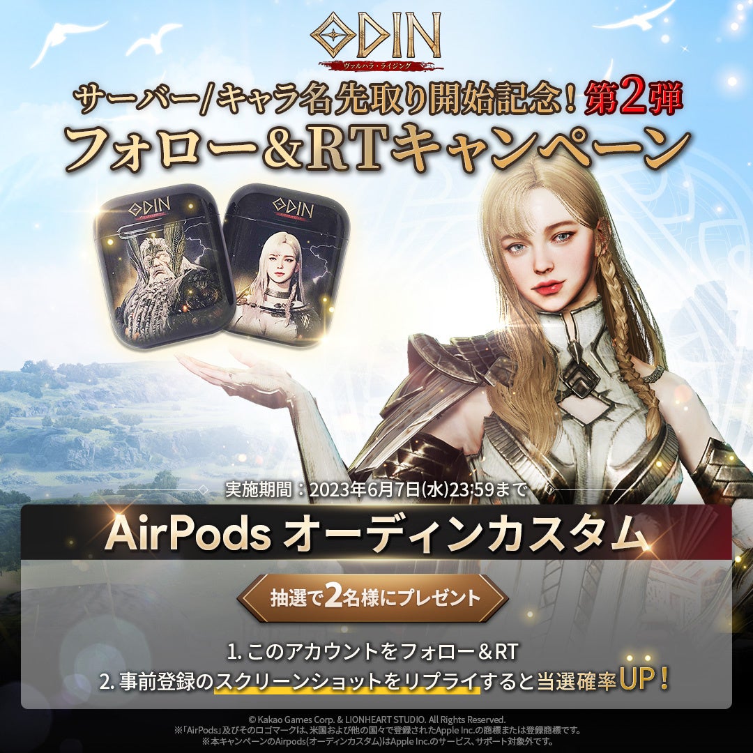 本キャンペーンに参加してくださった方の中から抽選で2名様に『オーディン:ヴァルハラ・ライジング』仕様に特別にデザインされたAirPods(オーディンカスタム)をプレゼントします!