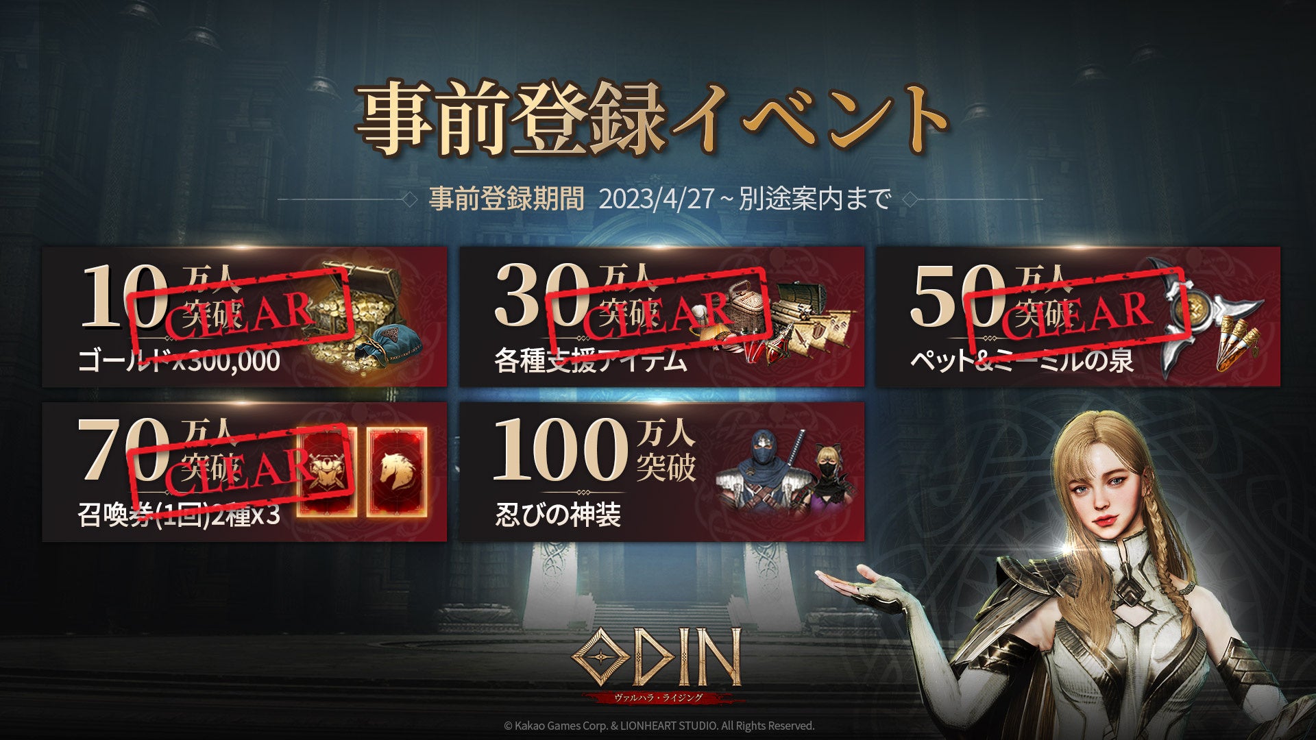 株式会社カカオゲームズは、2023年5月25日(木)、事前登録中の北欧神話オープンワールドRPG『オーディン:ヴァルハラ・ライジング』(iOS/Android/PC)の事前登録者数が70万人を突破したと発表しました。