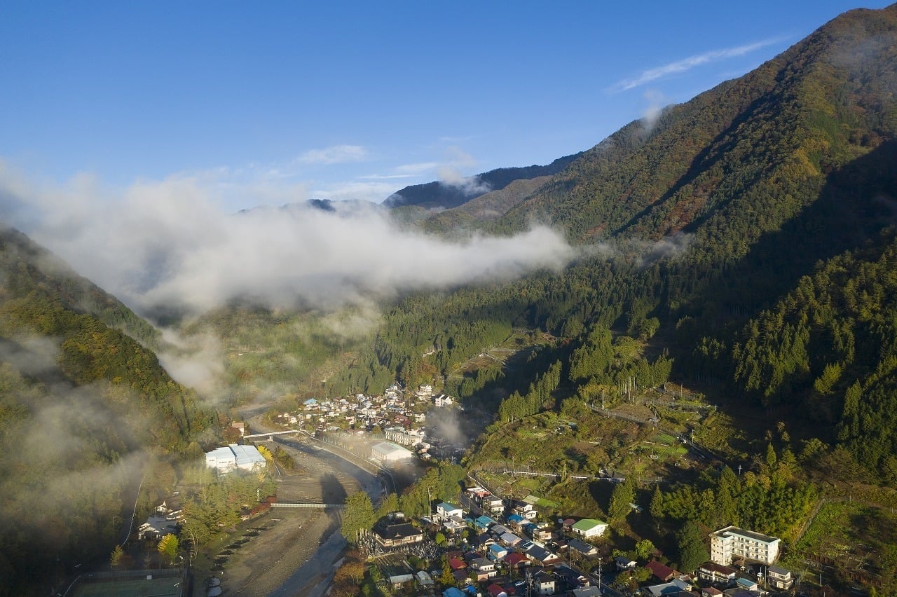 【紹介】 丹波山村は山梨県の北東部、東京、埼玉との境に位置し、雲取山や飛龍山といった2,000m級の山々に囲まれ、面積の97%を山林が占めます。人口は約530人と関東で最も少ない村(離島等を除く)ですが、そのぶん人と人とのつながりが濃く、協力し合いながら地域を支えています。300年以上続く「ささら獅子舞」や「お松曳」を代表する郷土芸能や、狩猟や舞茸の栽培など、古くから受け継がれてきた文化を大切に守りながら、自然環境を生かした新しいビジネスも生まれています。東京都市圏からのアクセスが良く、登山やキャンプ、ツーリングなどを楽しむ人に人気です。