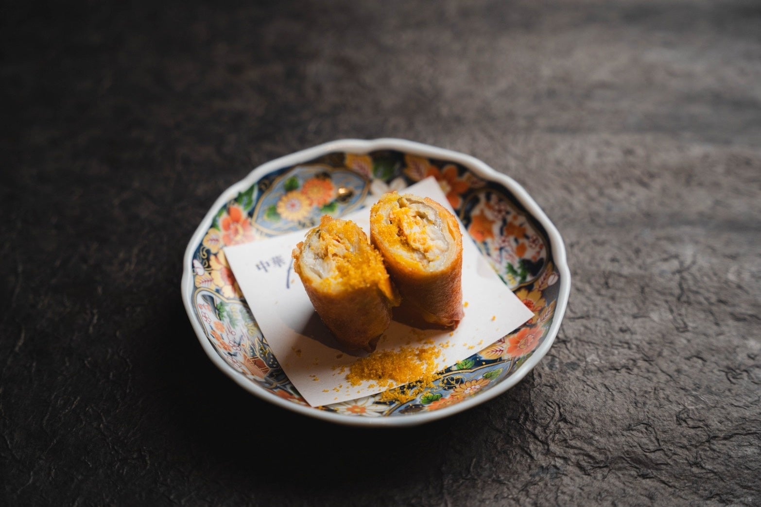 ◆上海蟹と旬魚の春巻き カラスミ仕立て