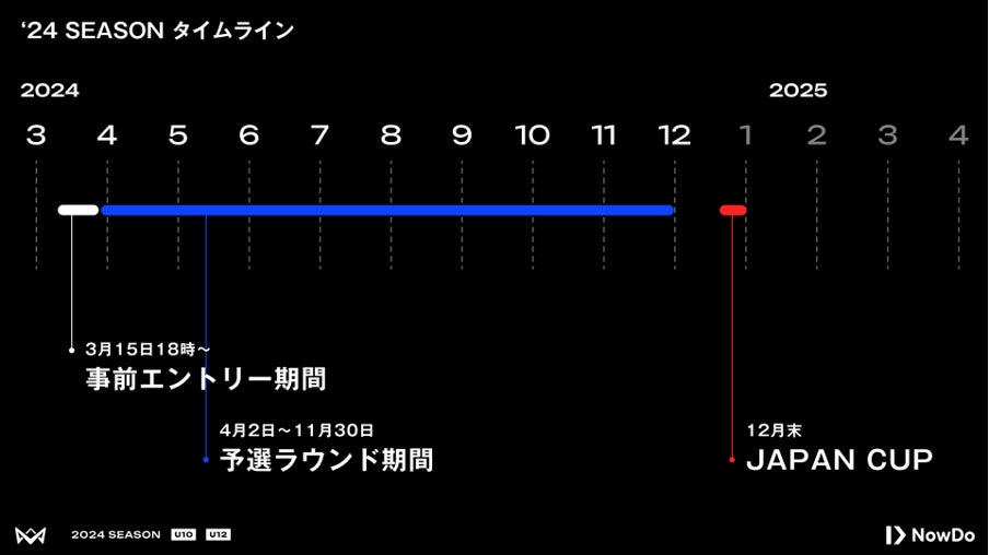 【4v4】‘24シーズンは4月2日より開幕します。4月2日〜11月30日は予選ラウンドが行われ、12月末に行われるJAPAN CUPの出場チームを決定します。大会エントリーについて、初回エントリー無料キャンペーンについて詳しくはこちらをご覧ください。