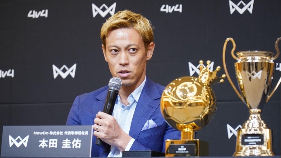 本田圭佑が発起人、育成年代の子どもたちを対象としたサッカー全国大会【4v4】2年目となる2024年シーズンの記者会見を開催。