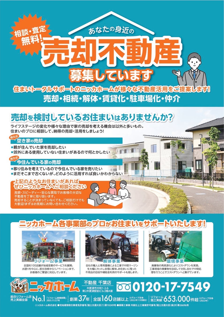 ニッカ不動産千葉店では、あなたの身近な売却不動産を募集しています。