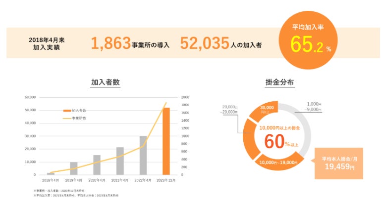 「はぐくみ企業年金」は厚生年金被保険者であれば、従業員(非正規雇用含む)でも役員でも加入可能な企業年金基金で、事業主側はコストを抑えながら企業年金・退職金制度を構築することができます。企業年金・退職金制度充実が従業員満足度向上・離職率低下につながることから、特に人手不足が深刻化している福祉業界において、人材定着をはかるための福利厚生のひとつとしてご好評いただいています。