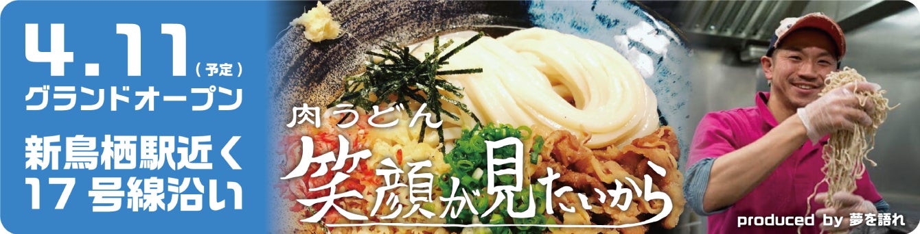 \走行特典に1ヵ月間うどん食べ放題も!/新オープンのうどん店『笑顔が見たいから』応援ドライバー募集キャンペーン開催