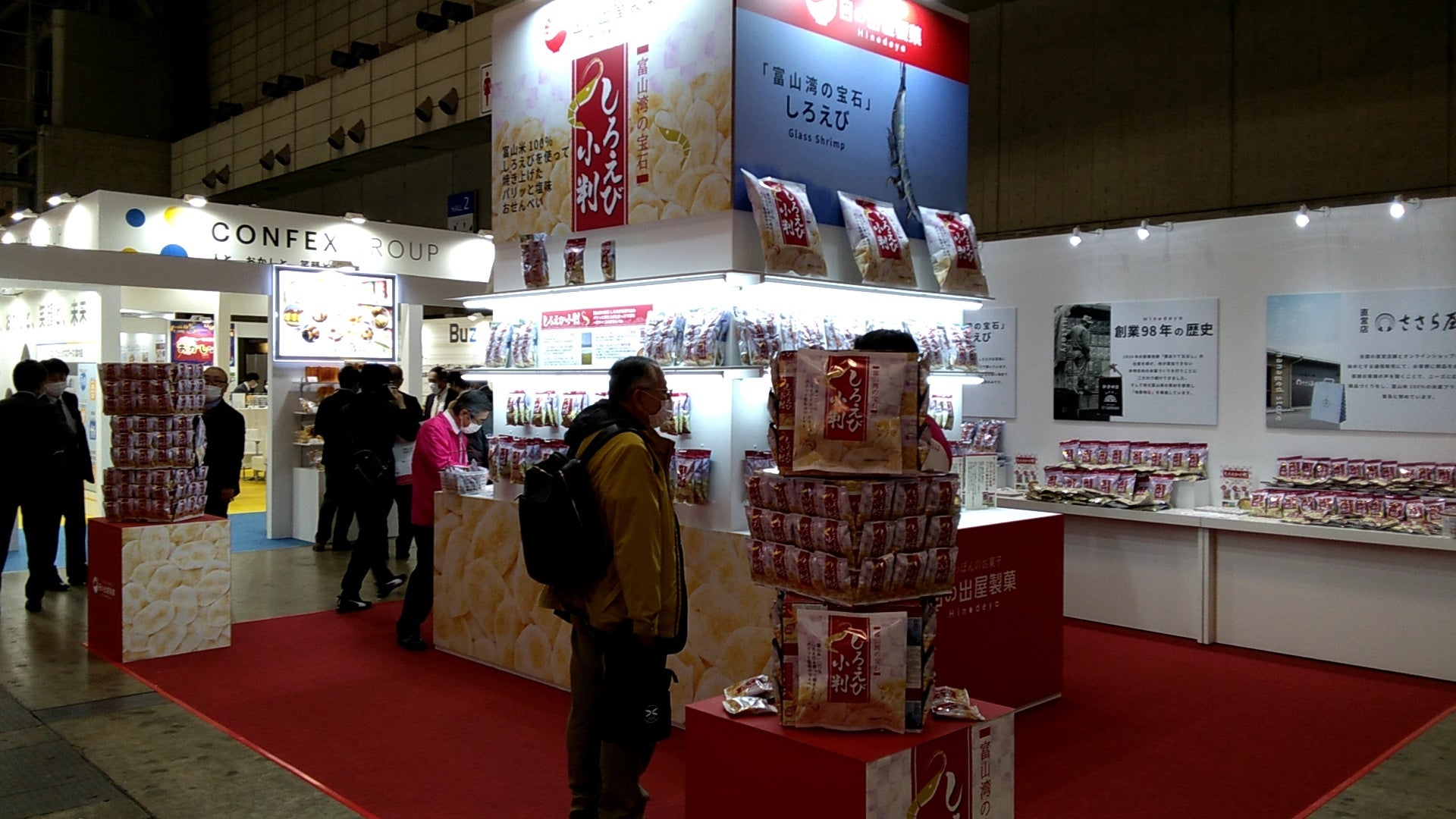 2月16~18日に開催された「スーパーマーケット・トレードショー2022」ではしろえび小判シリーズのブース展示を行い、「70gしろえび小判」についてご来場者様からは「フック付きの商品で様々な売り場に展開しやすい」、「お米の味が残っており味が良い」などのお声をいただきました。