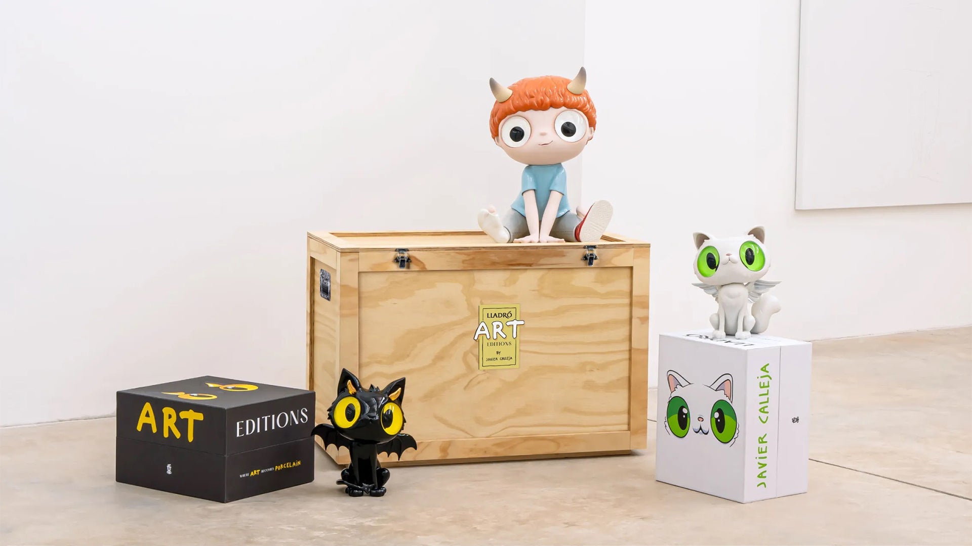 70年にわたりポーセリンの世界に革命をもたらしてきたリヤドロは、限定版のアート作品によってコンテンポラリーアートの世界に参入する新しいアート・プロジェクト「Art Editions」を開始しました。プロジェクトの第一弾として、リヤドロと今最も注目されているアーティスト、ハビア・カジェハによる3体のアート作品が誕生しました。「You Choose One」と名づけられたこの作品は、ポーセリンとガラスでできた「Boy」「Devil Cat」「Angel Cat」の3体で構成されています。