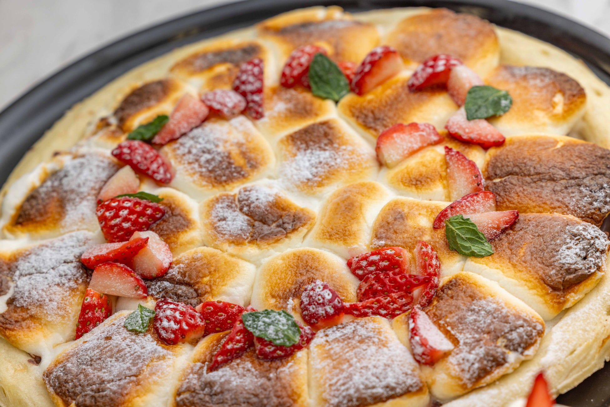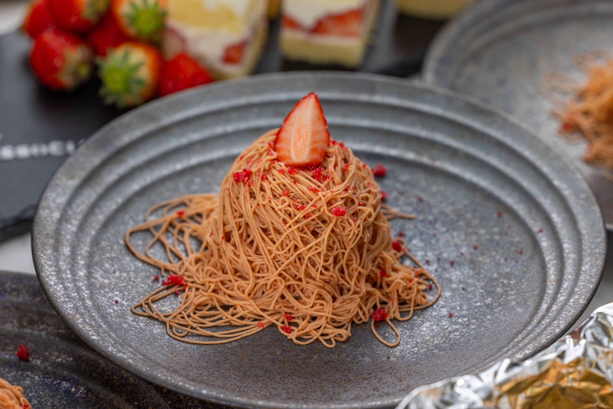 ドルチェコーナーには、北海道産クリームチーズを使ったベイクドチーズケーキやハスカップのプリン、イチゴショートケーキや桜餅など、北海道と春色がコラボしたメニューが並びます。