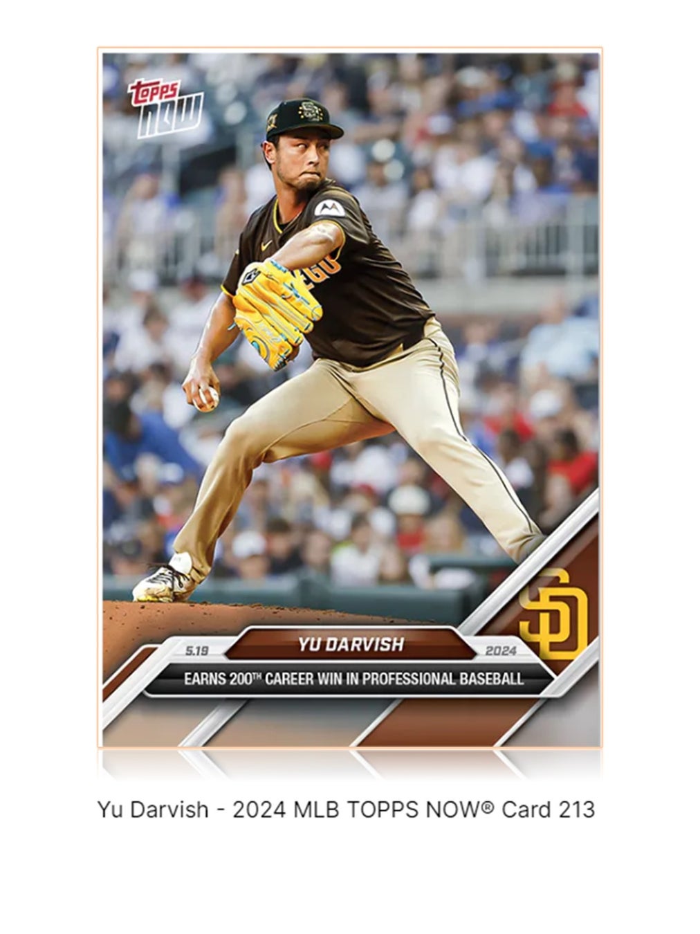 Topps株式会社が Topps NOW新商品「Yu Darvish - 2024 MLB TOPPS NOW® Card 213等 」発売開始を発表