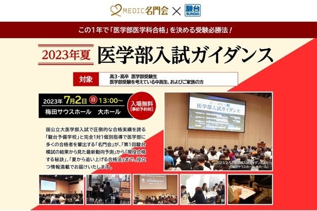 【MEDIC名門会×駿台予備学校】“2023年夏 医学部入試ガイダンス”を大阪・梅田で開催~夏直前!この1年で「医学部医学科合格」を決める受験必勝法をお伝え~