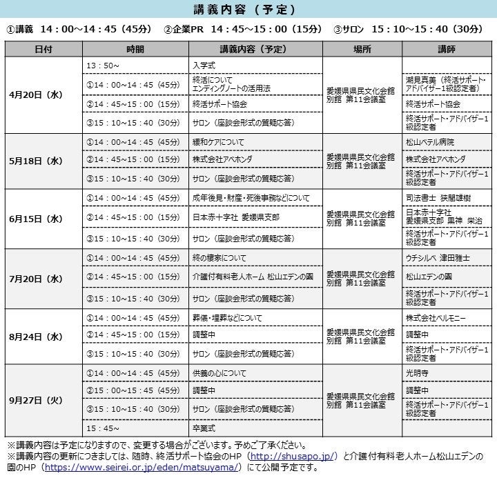 終活サポート協会と松山エデンの園が共同で終活シニア大学2022 開講!受講料は無料!
