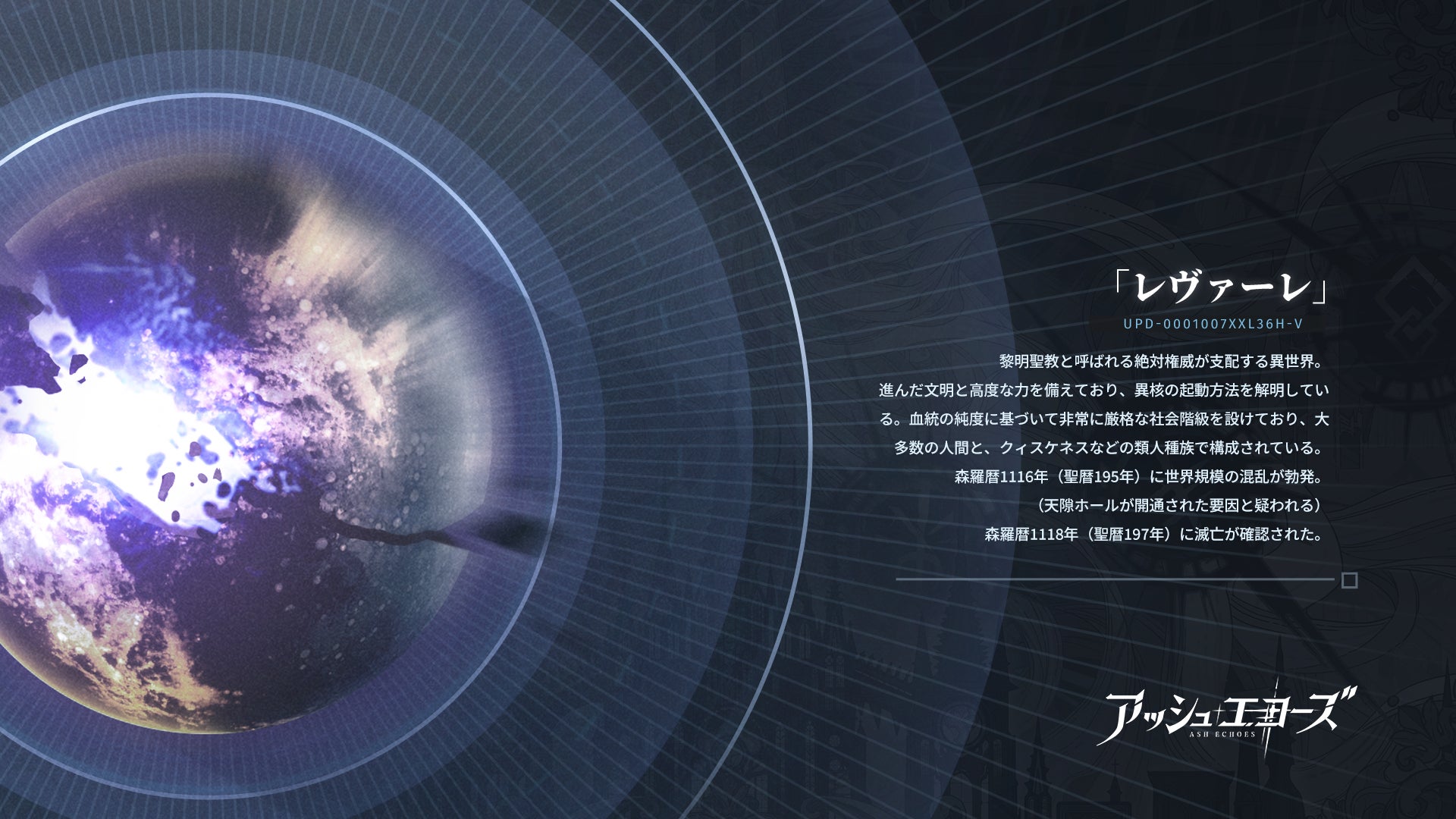 今回公開されたPVでは、「アッシュエコーズ」の世界観である「多元世界」での同調者(エコーラ)の様子と、担当声優のボイスを楽しむことができます。アッシュエコーズの大きな特徴のうちの一つである「多元世界」には、物語の舞台である森羅を中心として、異なる世界が存在します。