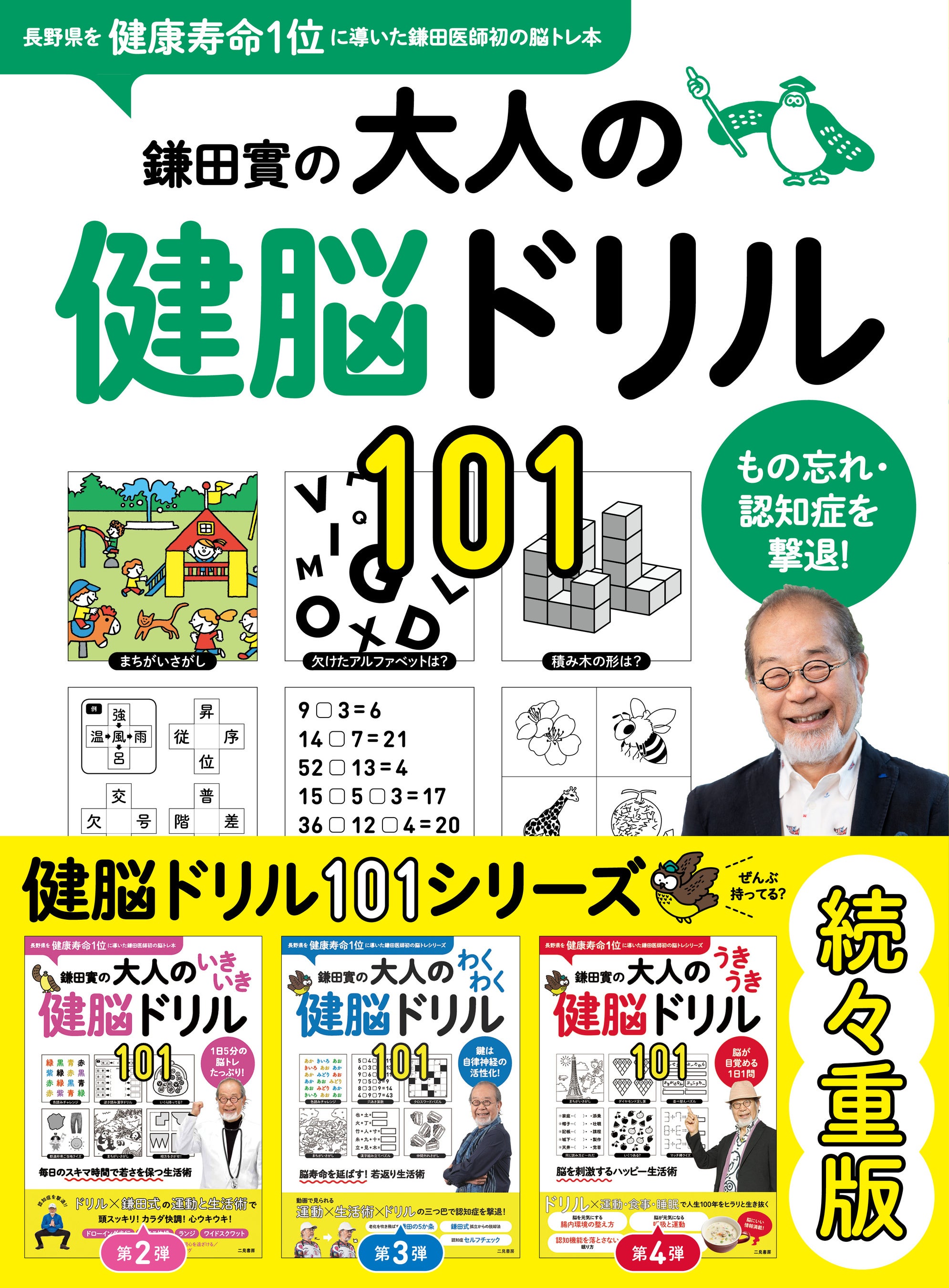 鎌田實医師監修の『健脳ドリル101』シリーズ。大好評につき緑の表紙の第1弾『鎌田實の大人の健脳ドリル101』の4刷が決定!