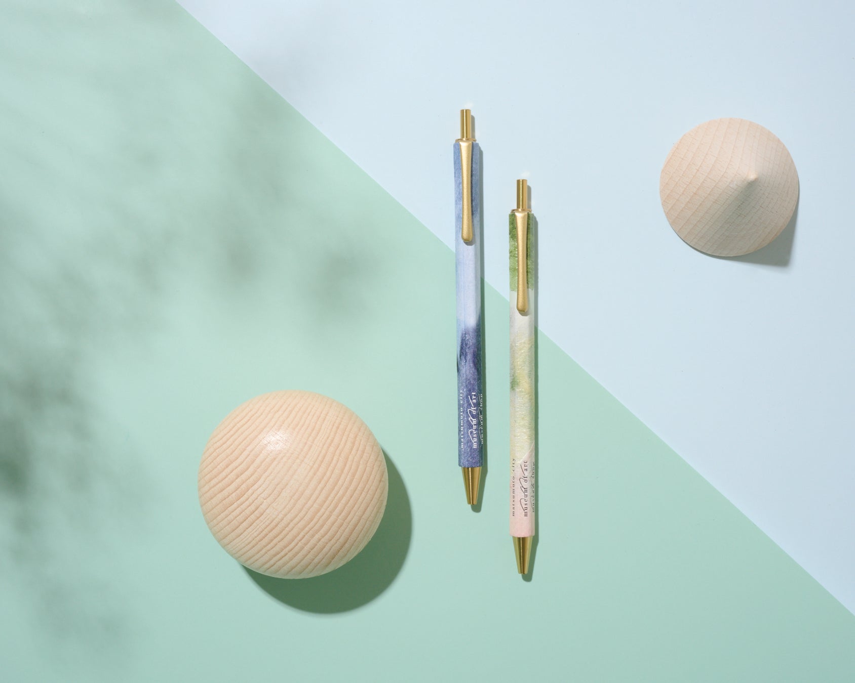 豊かな自然に囲まれた松本市の草原や山々、色とりどりの花々、どこまでも広がる空を、水彩ならではの透明感あふれる色彩で丁寧に描かれた作品を、ぬくもりのある雰囲気そのままに立体化しました。水彩ならではの繊細なグラデーションをより美しく引き立てるため、全体に微細な凹凸を施し、見た目だけでなく、手に触れたときの心地よい感触にもこだわりました。指先から自然の息吹を感じられる、日常に寄り添うボールペンです。使うたびに、心がふっと和らぐようなひとときをお届けします。