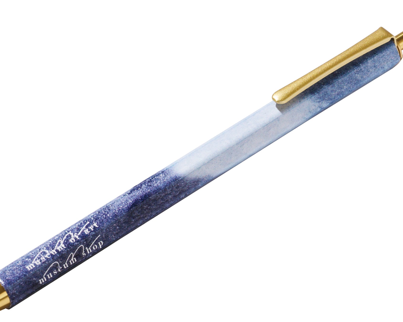 松本の風景を思わせる、山々の稜線、晴れ渡る空と太陽、澄んだ空気の中にきらめく星空と月、清らかな水源や水玉をモチーフにしたデザインを、濃淡のメリハリをつけながら、さまざまな物語が浮かび上がるようなバランスでレイアウトしました。濃い部分にはしっかりとした高さのある凹凸を、薄い部分には控えめな起伏を加えることで、水彩画のような繊細なテクスチャを表現しています。差し込む光の明るさや角度によって表情がやさしく変化し、使うたびに異なる魅力が感じられる、手のひらサイズのアートピースのようなボールペンです。
