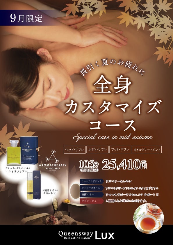 株式会社BEST HERBS(代表取締役社長 塚田 正之:中央区銀座3-2-9)が運営するQueenswayLUX(https://www.queensway-group.jp/qw-lux_lp.html)が9月限定のお得な施術コースを提供しました。