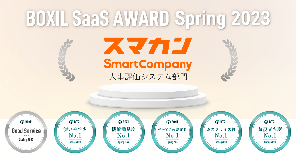 人事評価と目標管理のスマカン、「BOXIL SaaS AWARD Spring 2023」人事評価システム部門で「Good Service」ほか5つのNo.1に選出