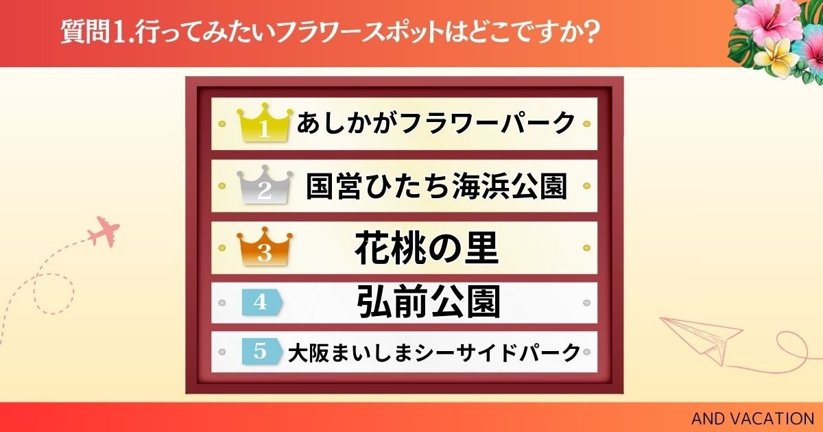 そこで、行ってみたいフラワースポットをアンケートで聞き取り調査をしました。ぜひ、チェックしてみてください!