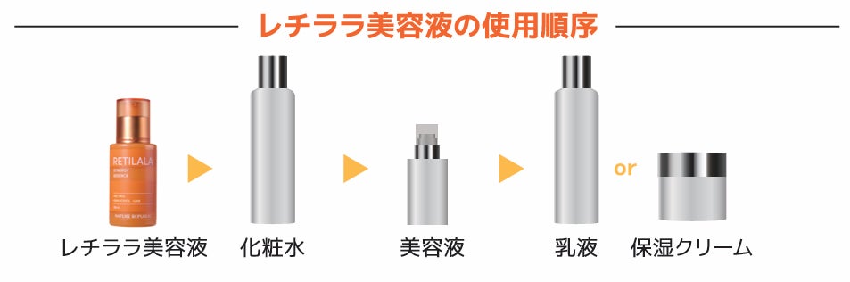 レチララ 美容液がよくなじんだら、化粧水、美容液、乳液又はクリーム等で肌を整えます。