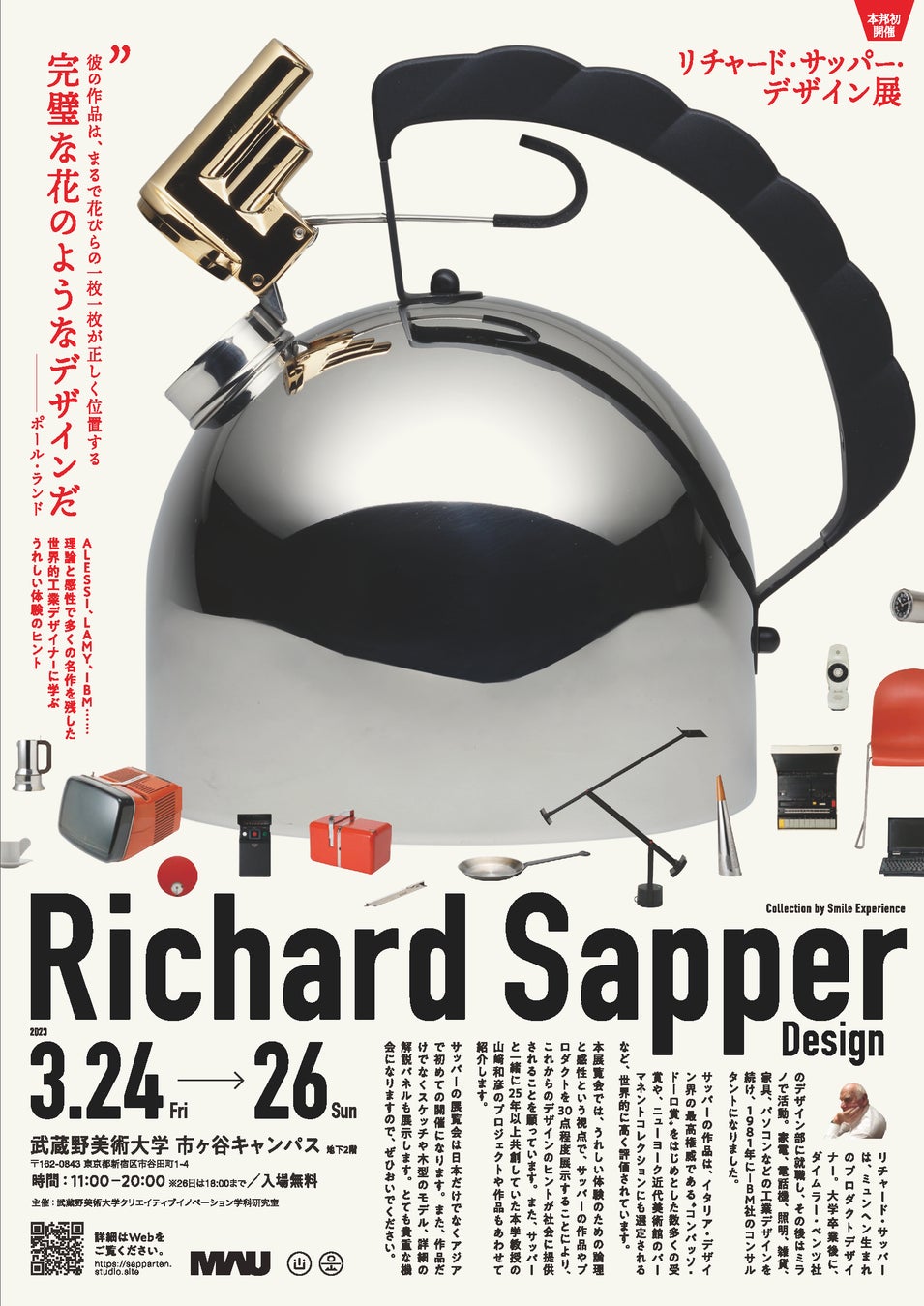 武蔵野美術大学市ヶ谷キャンパスにて、2023年3月24日(金) - 3月26日(日)の間、世界的な工業デザイナーであるリチャード・サッパーの展覧会「リチャード・サッパー・デザイン展 うれしい体験のための論理と感性のデザイン」を開催します。