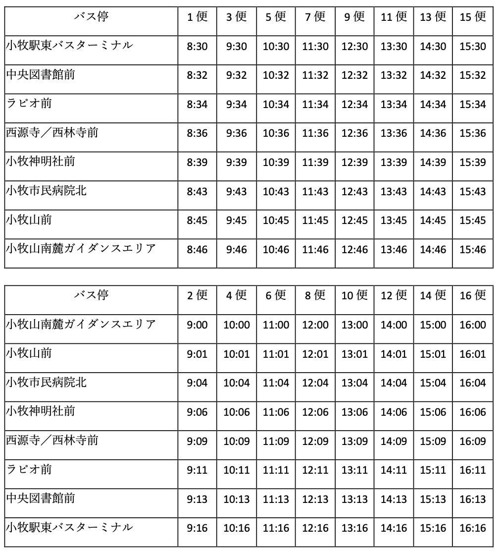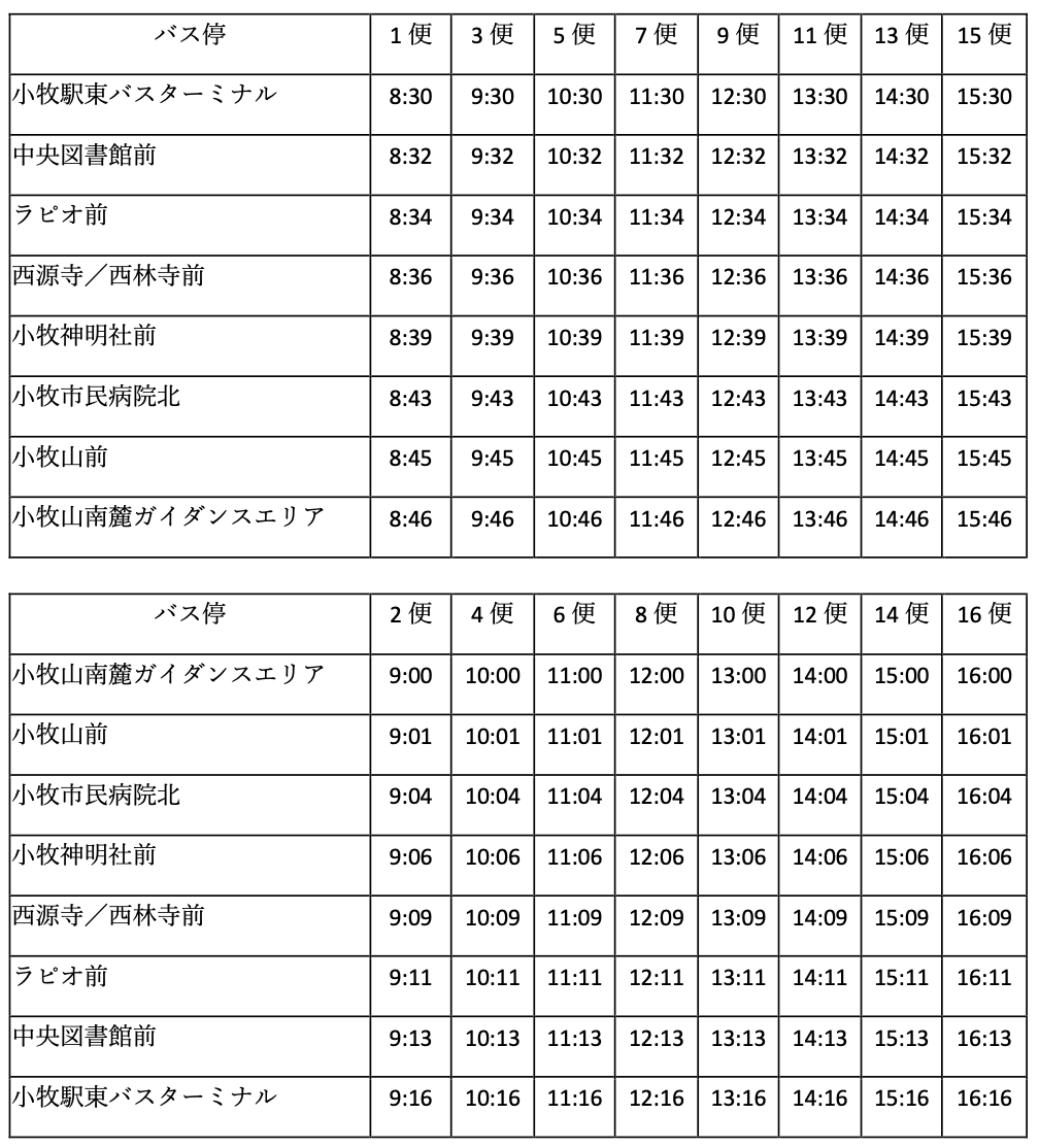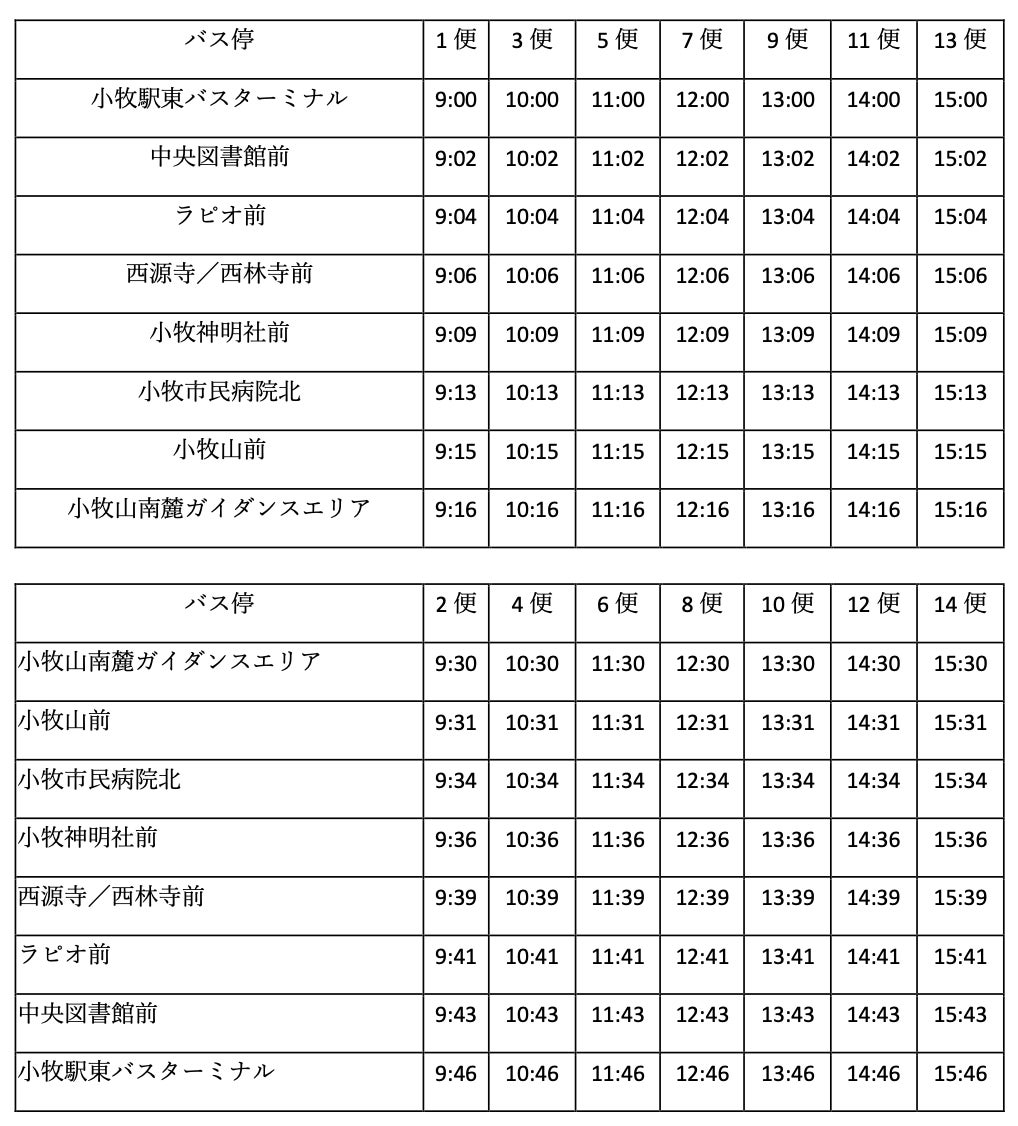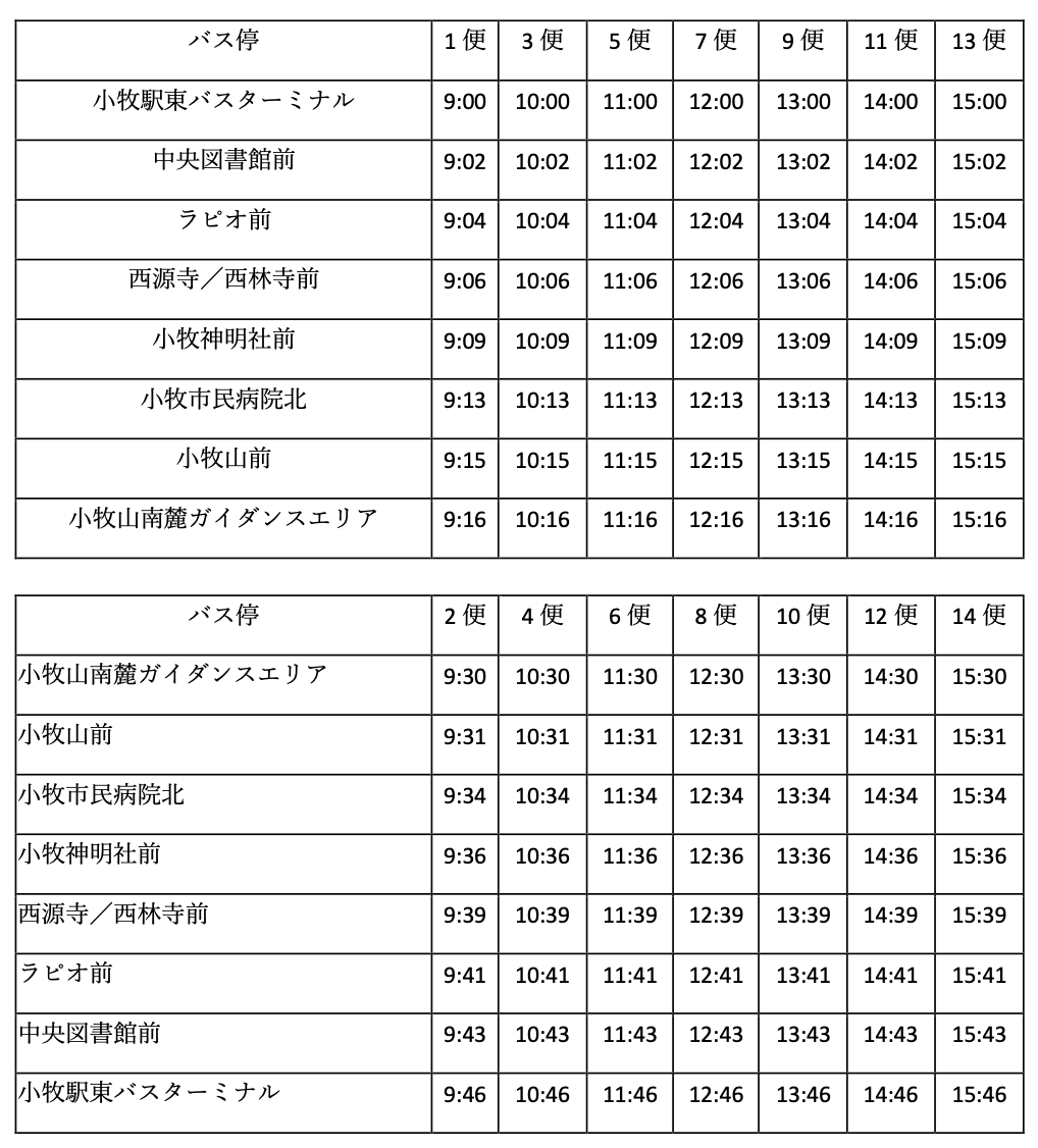 ・運⾏時間:平⽇ 9 時〜15 時46分、⼟⽇祝⽇ 8時30分〜16時16分