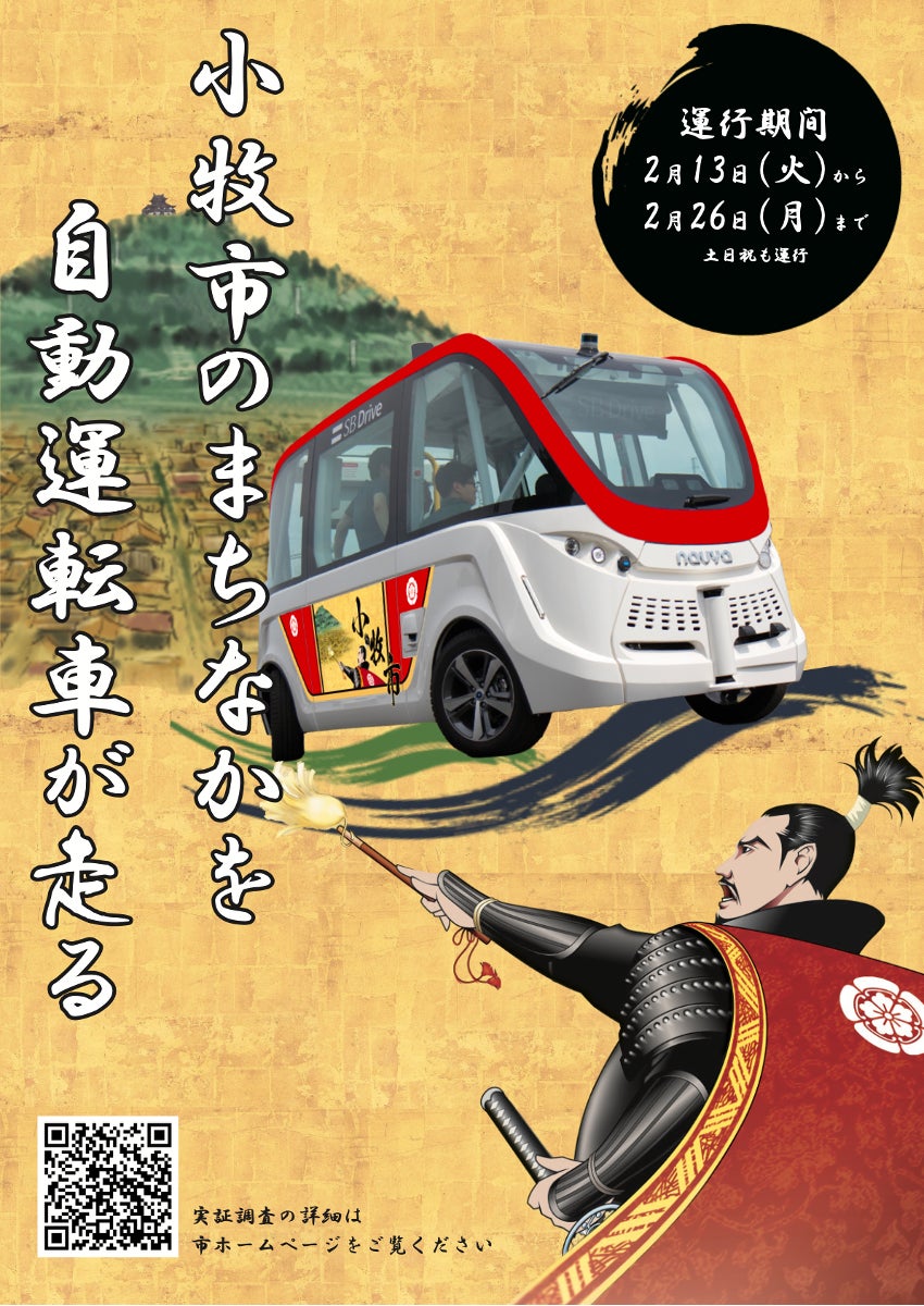 BOLDLY株式会社(ボードリー、代表取締役社⻑ 兼 CEO:佐治 友基、以下「BOLDLY」)は、愛知県⼩牧市(市⻑:⼭下 史守朗)が実施する⾃動運転実証調査事業を受託し、2024年2⽉13⽇から2⽉26⽇まで、⼩牧市内の公道で⾃動運転車両「ARMA(アルマ)」を実証運⾏します(以下「本実証調査」)。BOLDLYは、本実証調査の全体統括に加え、⾞両の提供や⾃動⾛⾏の設定、BOLDLYが開発・提供する運⾏管理システム「Dispatcher(ディスパッチャー)」の提供、「Dispatcher」を⽤いた運⾏・遠隔監視業務などを⾏います※1。