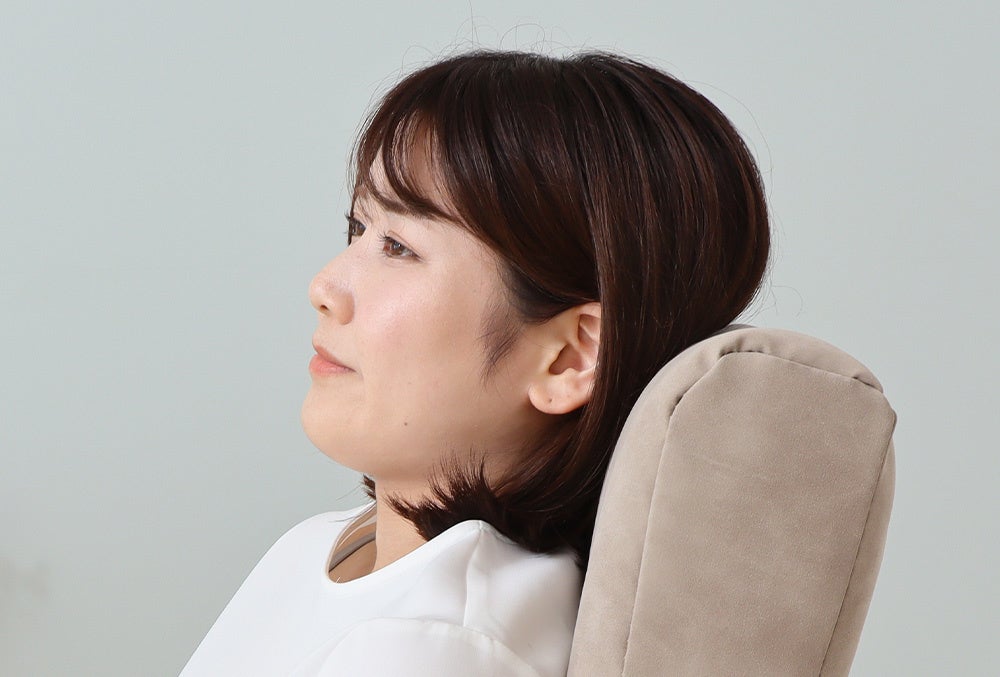 背もたれの高さがあるので、ヘッドレストのようにお使いいただけます。頭を覆うほどの高さが苦手な方に、ちょうどよい高さとなっています。