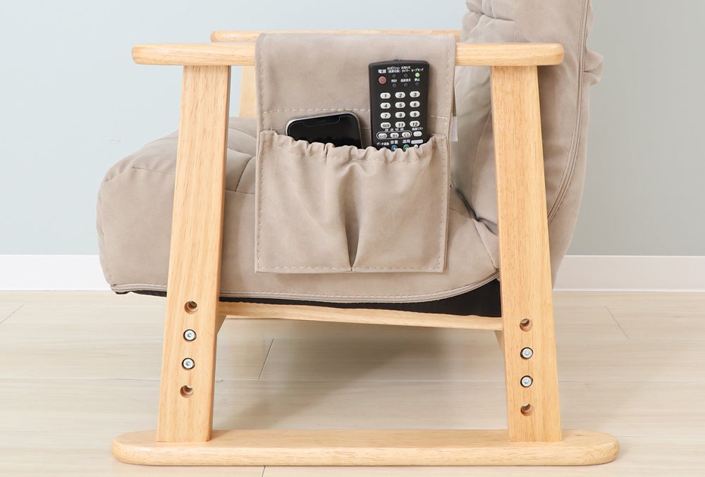 取り外し可能なサイドポケットが付いていますので、スマホやリモコンなどの小物を入れることが出来ます。