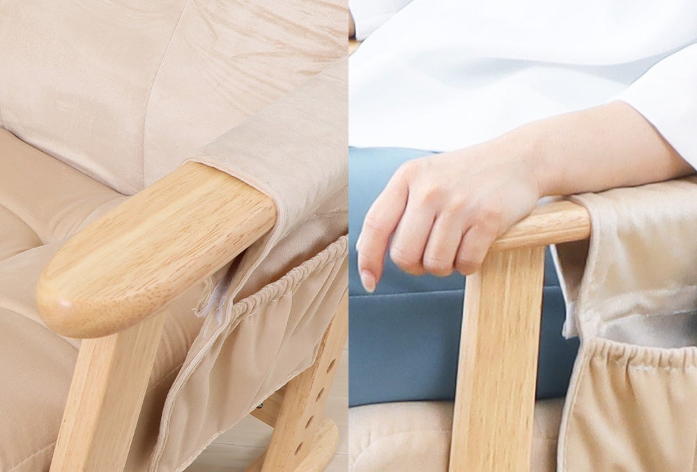 立ち座りのしやすさは、握りやすいサイズの肘掛けにも理由がありました。丸みがあり優しいデザインです。