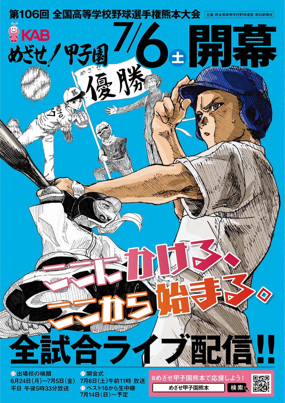 KAB熊本朝日放送「めざせ!甲子園」2024年度ビジュアル完成!イラスト作画は熊本県立高森高等学校マンガ学科1年生が担当