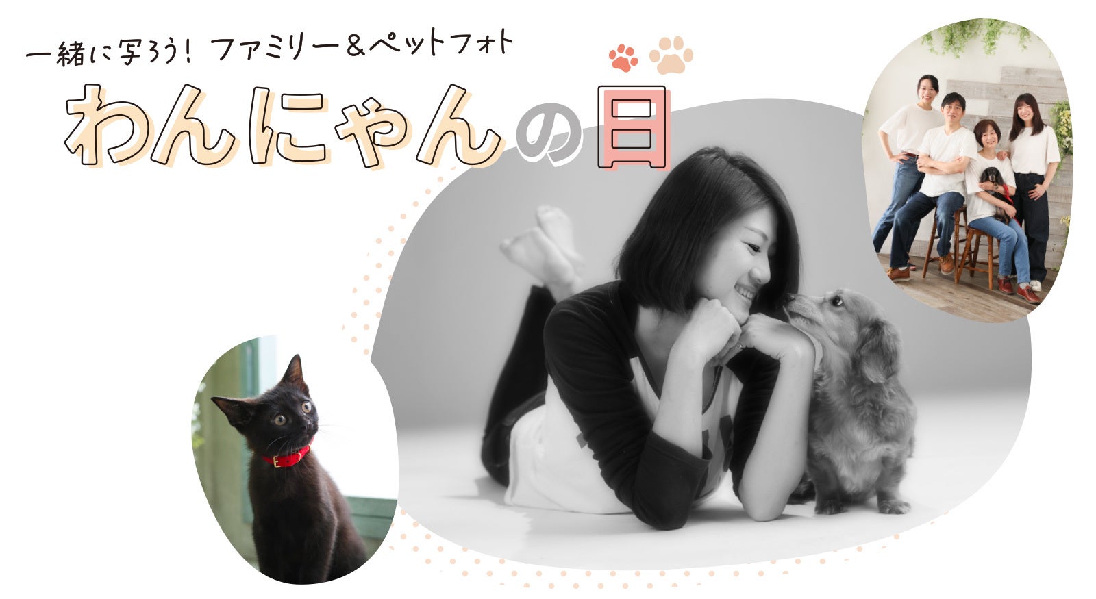 大切な家族と記念写真を残せると好評のわんにゃんフォト。撮影料無料の「わんにゃんの日」イベントを開催します!イベント限定の特別プランや、SNSを通してわんにゃんフォトの魅力を発信するキャンペーンも。