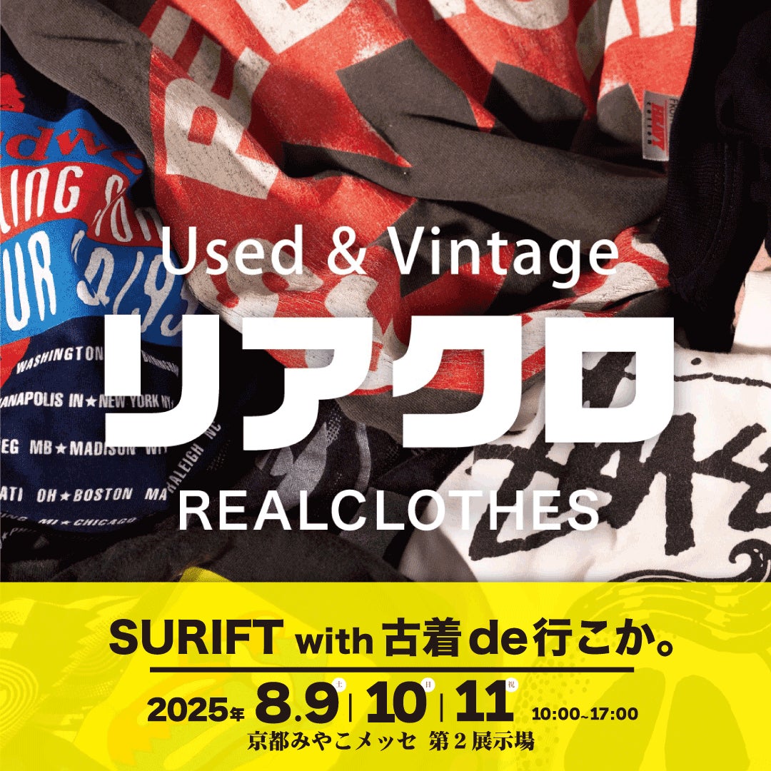 有限会社ヤマトが運営する、Used&Vintage リアクロは、8月9日(土)~11日(月・祝)に開催される古着フェス「SURIFT with #古着de行こか。」に参加いたします。