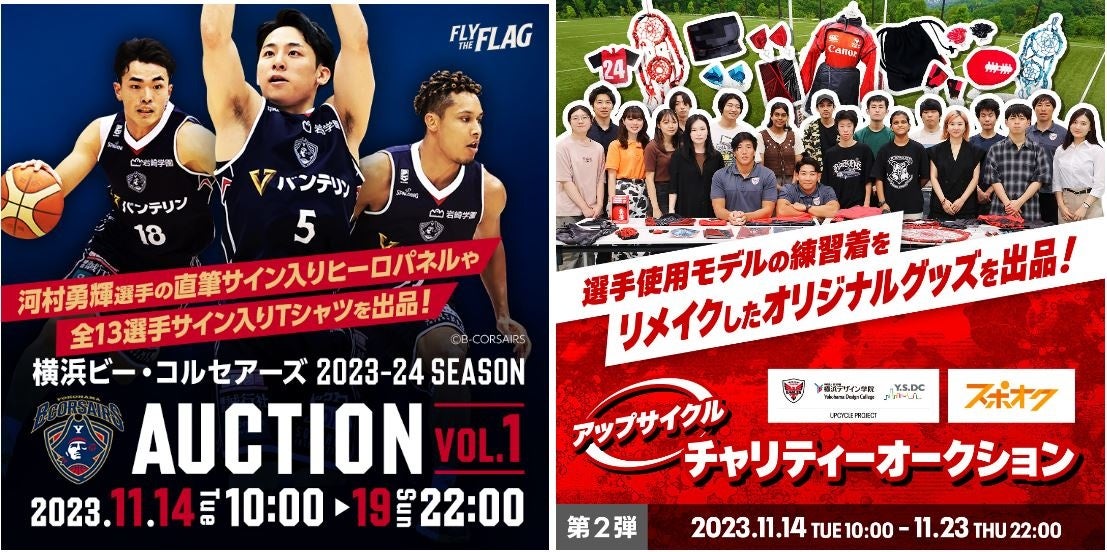 「スポオク」の提供開始に伴い、横浜ビー・コルセアーズ(B.LEAGUE B1)と横浜キヤノンイーグルス(JAPAN RUGBY LEAGUE ONE)がそれぞれオークションを開始しました。