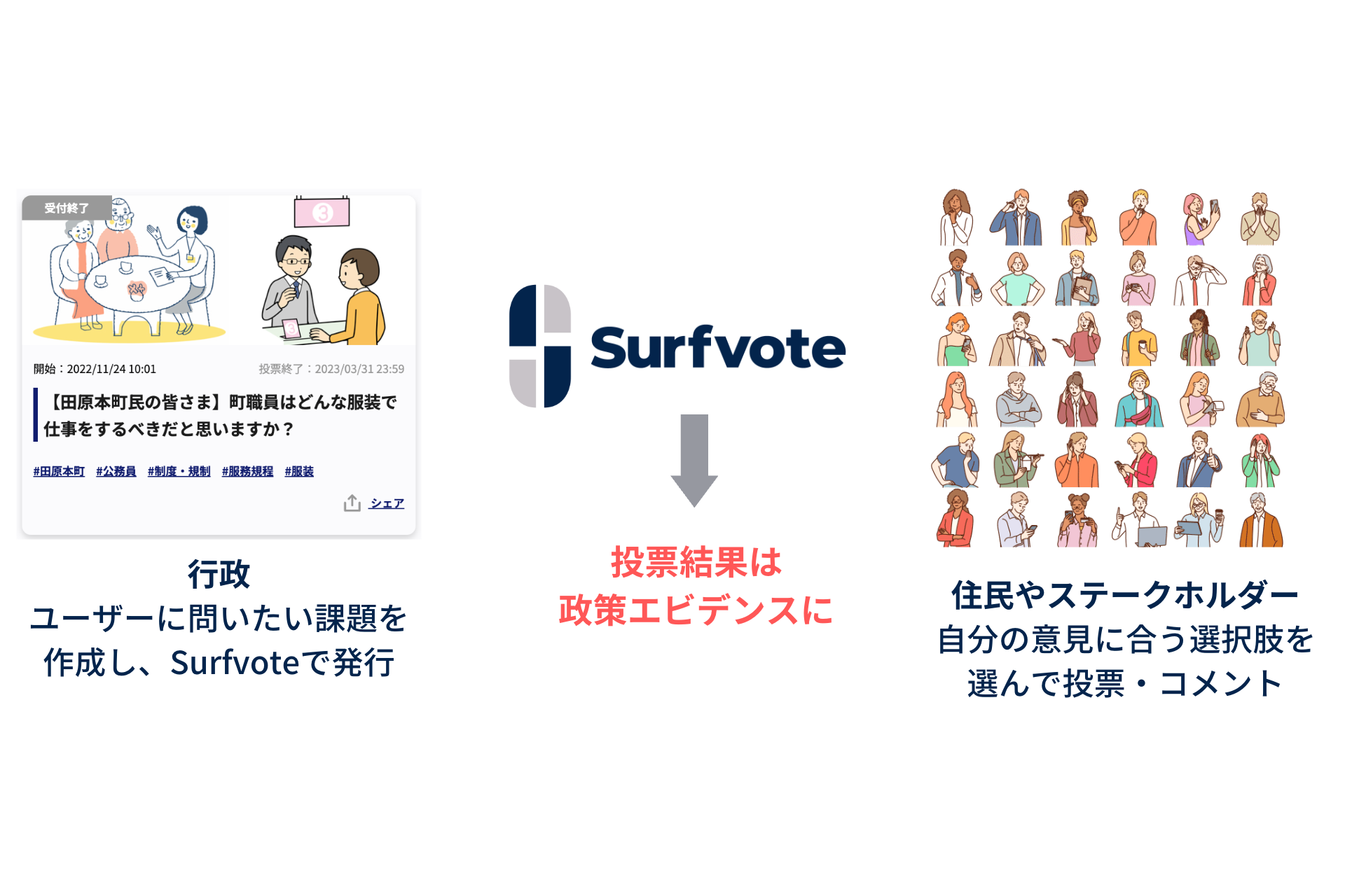 Surfvoteは一般ユーザー向け以外にも、地方公共団体や大学にも展開しています。