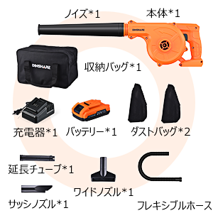 DINSHARE 20V一台二役充電式ブロワーは落ち葉、ダスト、雪をすぐに吹き飛ばすことはもちろん、DIY作業から出された木屑や細かいゴミでもダスクバッグに吸い込まられ、集じんにも非常に役に立ちます。これ一台だけで様々な作業ニーズに応えられます。