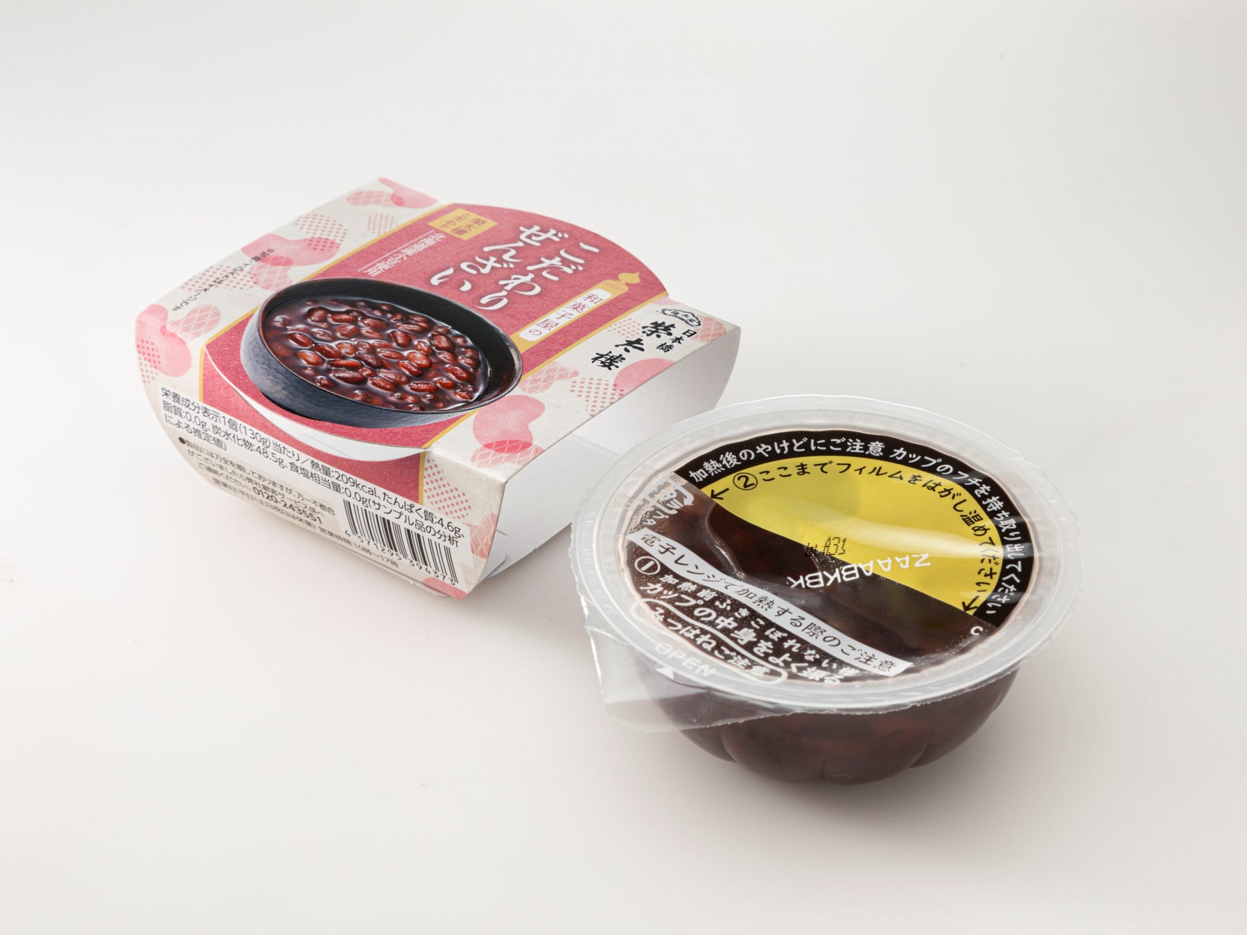 蓋を半分開けて電子レンジでそのまま温められるので手軽に温かいぜんざい・栗ぜんざいをお楽しみいただけます。