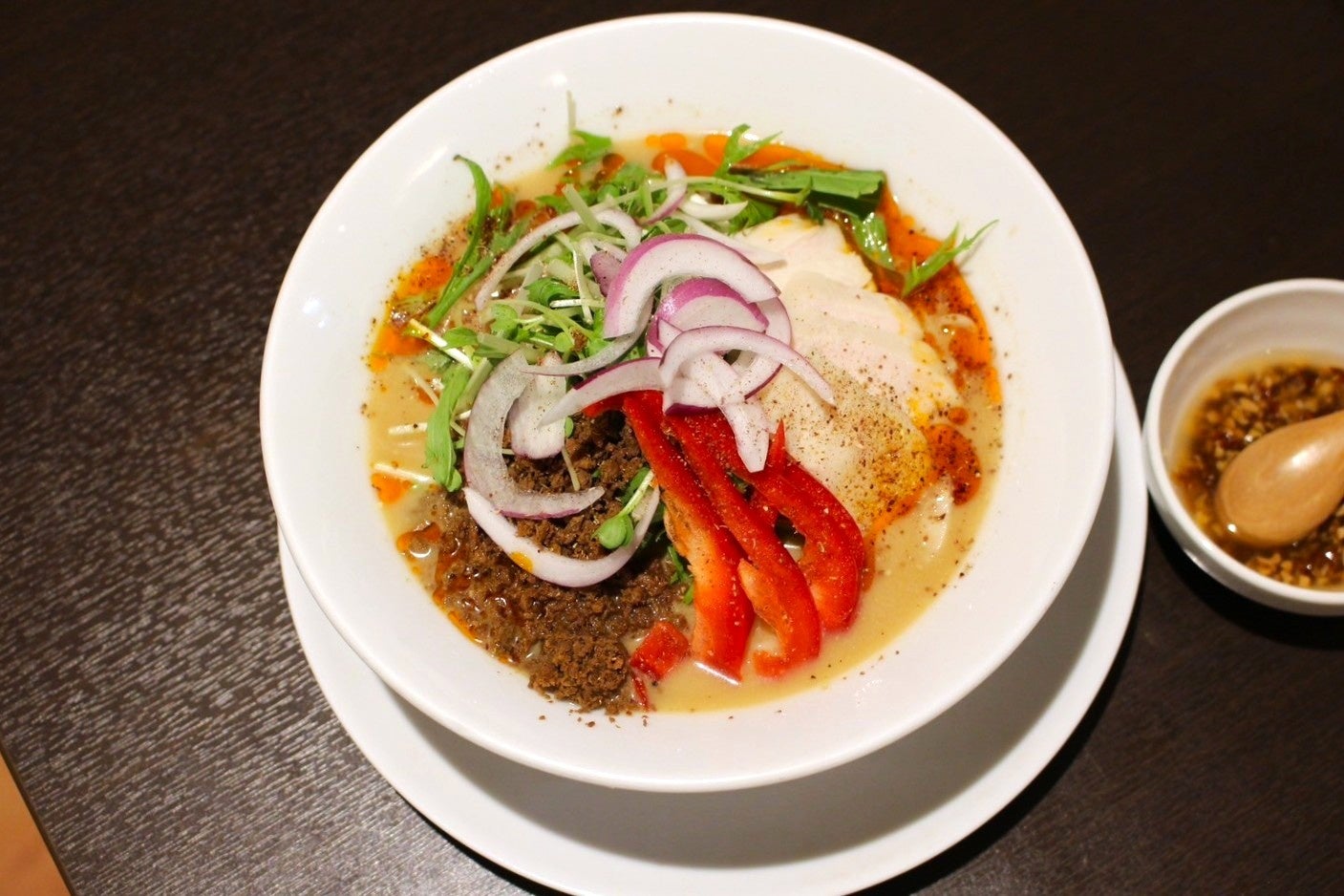 今回は、担担麺専門店、四川担担麺 阿吽(東京都湯島、以下「阿吽」)と発酵調味料の販売をするキッコーマンこころダイニング(本社:東京都、代表:茶谷 良和、以下「こころダイニング」)のコラボ商品、「サクサクしょうゆアーモンドの冷やし担担麺 チキンサラダ仕立てドレッシングソース」をご紹介します。