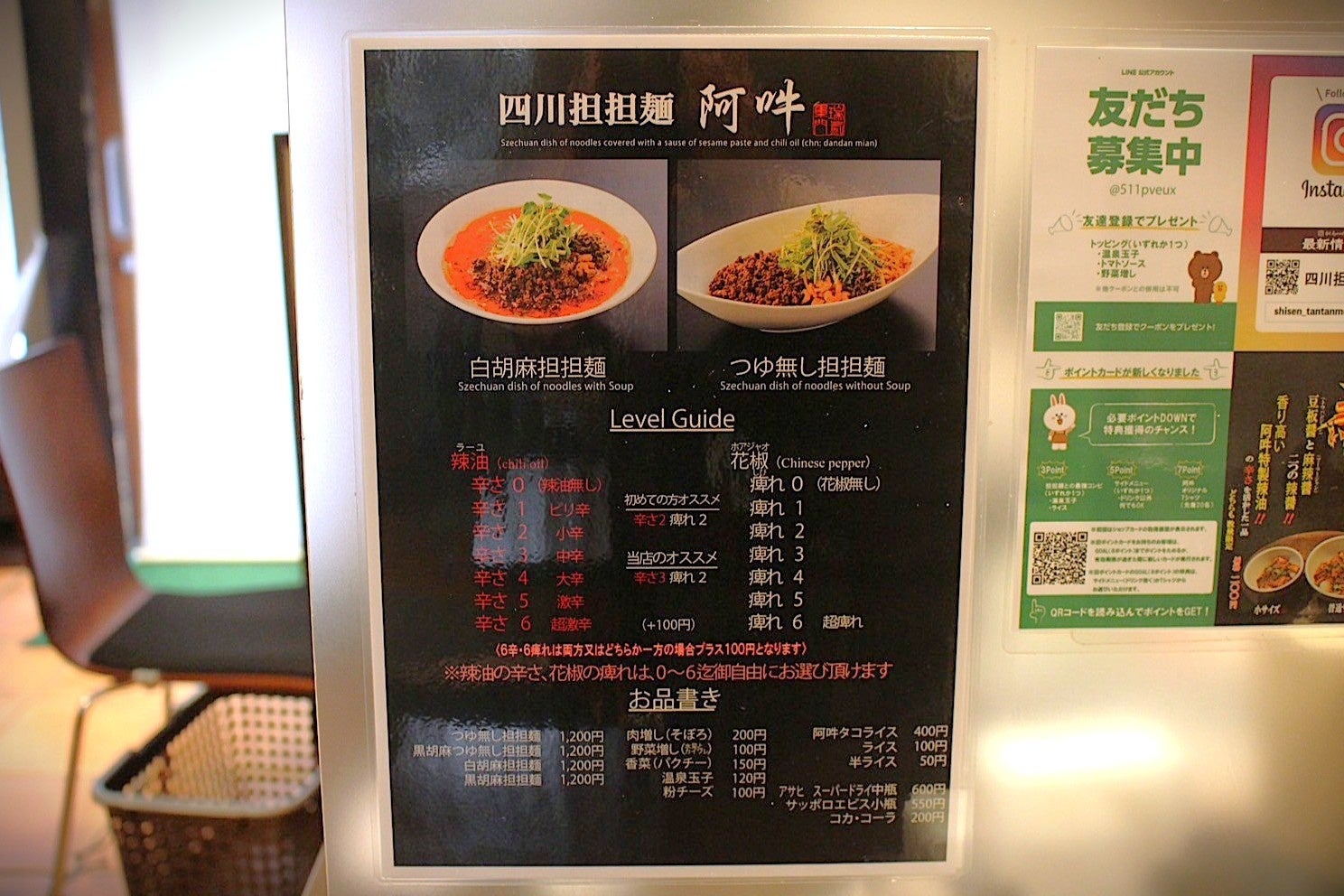 担担麺は辛さ・しびれを0~6の7段階で選ぶことができ、辛さもしびれも2がおすすめ。