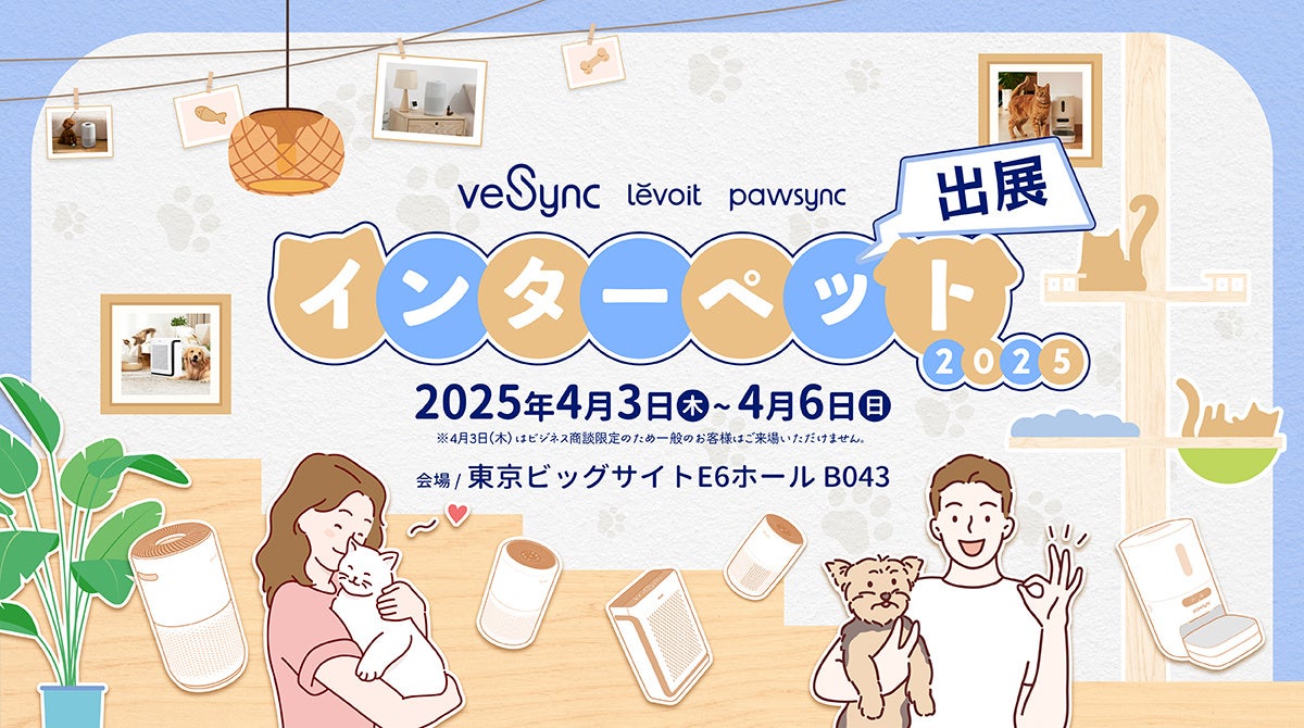 アメリカ発の小型家電メーカーVeSync(ウィーシンク)の日本支社、Vesync Japan株式会社(本社:東京都千代田区、以下VeSync)は、2025年4月3日(木)から2025年4月6日(日)まで東京ビッグサイトで開催する「第14回インターペット」に出展します。今回の出展では、飼い主とペットが共に過ごす環境に清潔な空気を提供する「Levoit」ブランドの空気清浄機と、昨年末に新たに登場するペットケア家電ブランド「Pawsync」の製品を展示します。