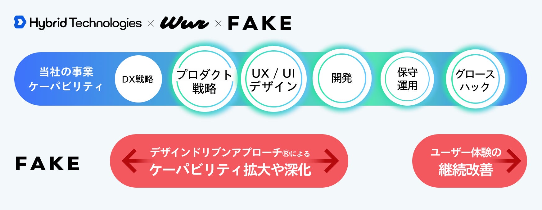 FAKE社は、起業家やコンサルティングファーム、広告代理店出身のビジネス経験豊富なデザイナーを中心に構成されており、深いビジネス理解に基づいたプロダクト戦略や体験設計を提供しています。これにより、FAKE社の強みであるプロダクト戦略・UIUXデザインと、当社の強みである機動的なシステム開発を統合的に提供し、競合優位性を高めるMVP開発を支援してまいります。