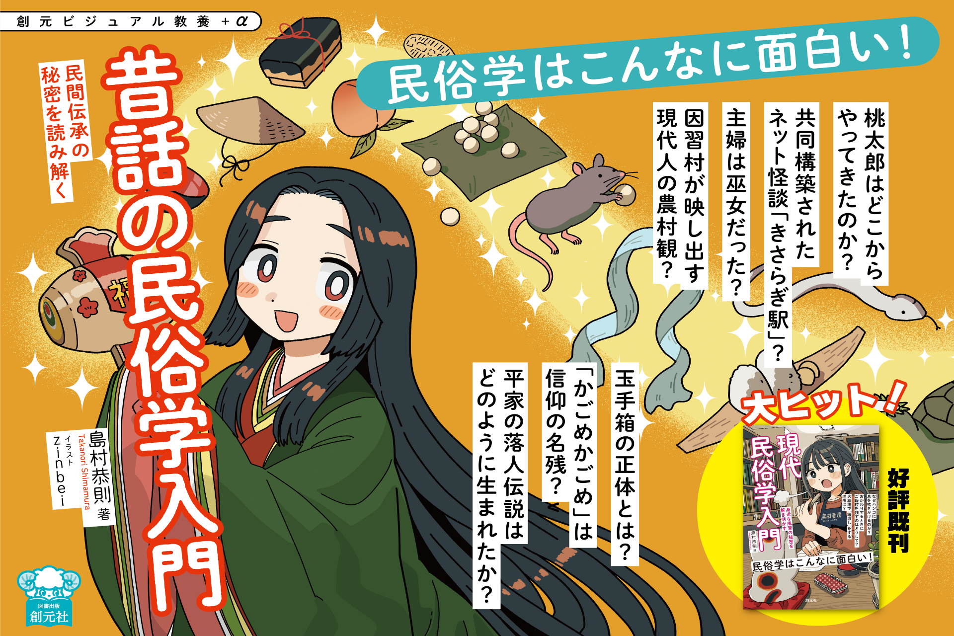 民俗学ブームを背景にヒットした『現代民俗学入門』の続編、『昔話の民俗学入門』が11/25に発売。漫画家zinbeiの図解イラストで民間伝承の謎を解き明かす。一項目、見開き2ページ完結で読みやすい!