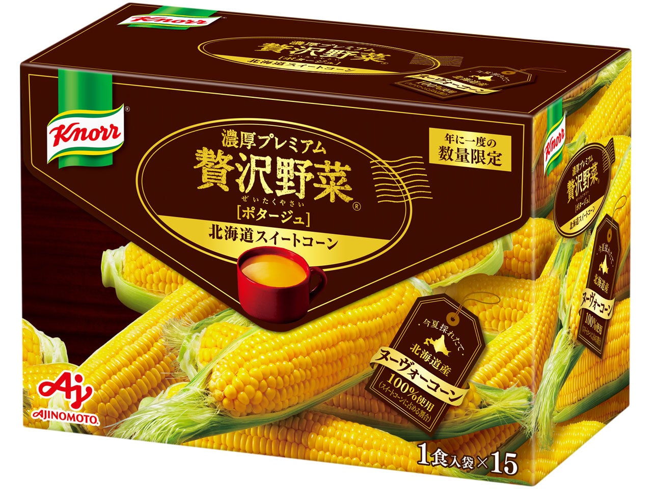 味の素株式会社(社長:藤江 太郎 本社:東京都中央区)は、通販限定のプレミアムなスープ 「クノール® 贅沢野菜®」シリーズの季節限定商品として、「クノール® 贅沢野菜®」<北海道スイートコーン>今夏採れたてヌーヴォーコーンを、2024年10月16日(水)より、通販のみ・数量限定で販売開始します。