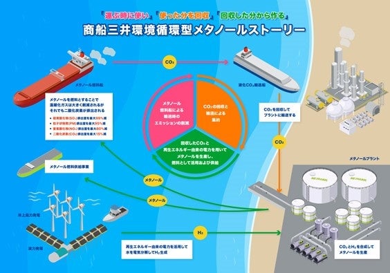 商船三井は世界最大級のメタノール輸送船隊19隻を運航しており、内、メタノール2元燃料船については2016年から運航を開始しました。現在5隻のメタノール2元燃料船を運航しており、これら5隻のメタノール燃料による累積運転時間は、約35,000時間に達し、GHG排出量を削減しています。本年1月には、商船三井が保有する「Cajun Sun」でバイオメタノールを活用した世界初のNet Zero Voyageをパートナーと達成するなど、海運業界の先駆けとして環境負荷低減に取り組んでおり、海運業界が用いる代替燃料のサプライチェーン上における様々な取り組みも進めています。また、環境循環型メタノールストーリー ( https://www.mol-service.com/ja/blog/environment-circulating-model-methanol-story )を通じて、環境負荷の低減を掲げています。