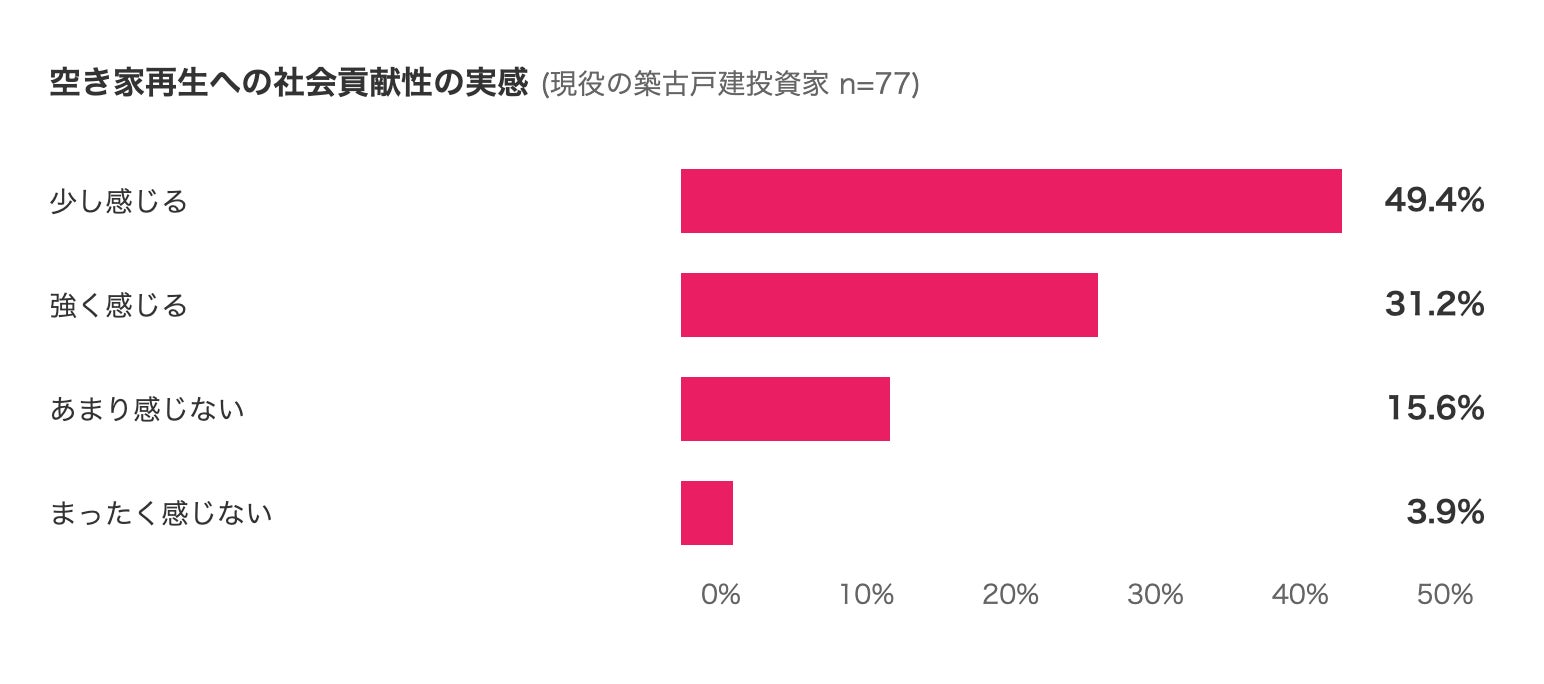 なお、本リリースで「現役の築古戸建投資家」と表記する場合は、アンケート上「現在、投資・所有している」と回答した層(n=77)を指します。