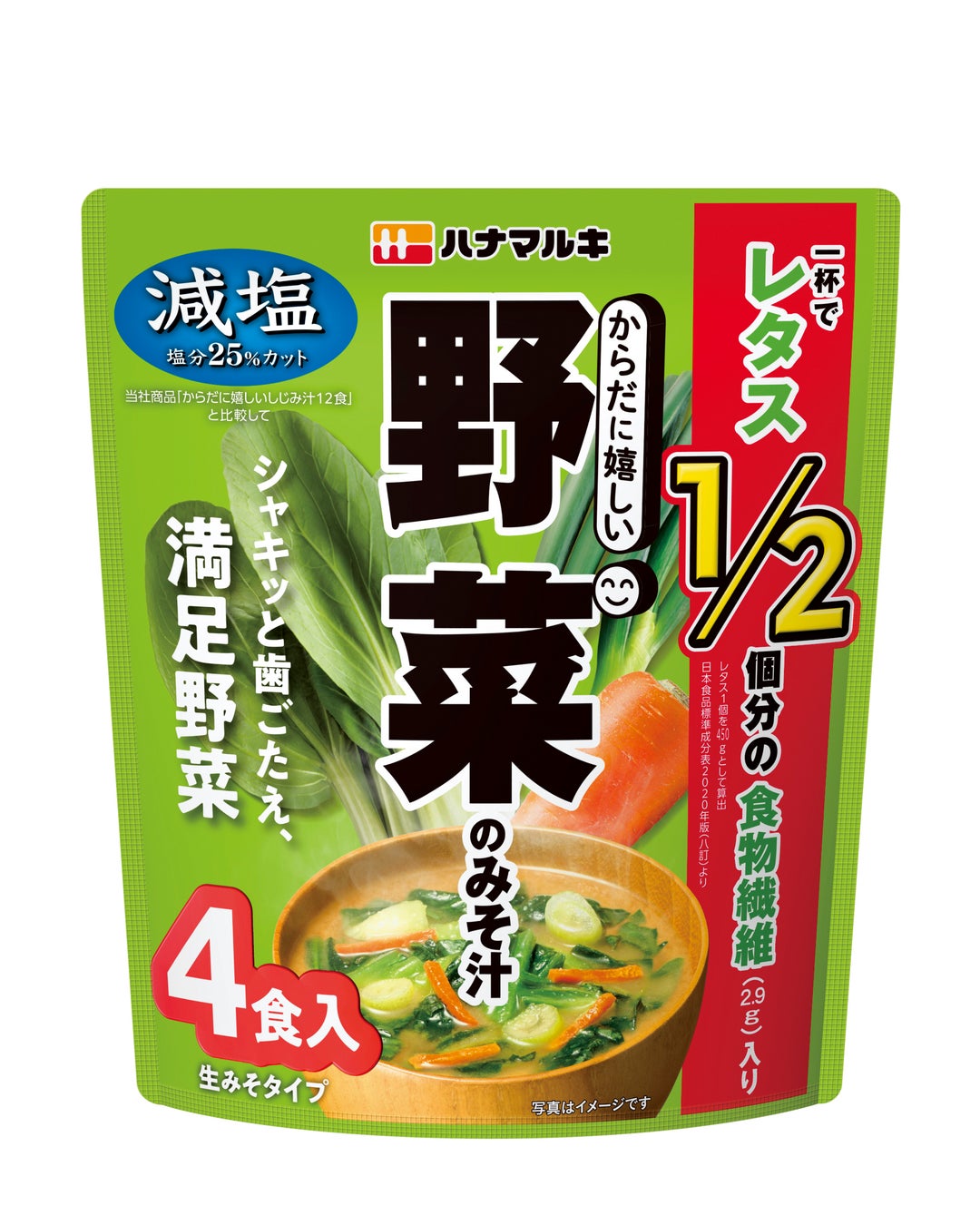 <ハナマルキ2025年春の新商品>人気商品「すぐ旨カップみそ汁シリーズ」にレタス1/2個分の食物繊維も摂れる「すぐ旨カップみそ汁 からだに嬉しい減塩野菜」新登場!