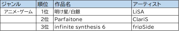 ・CD年間ランキング アニメ・ゲーム