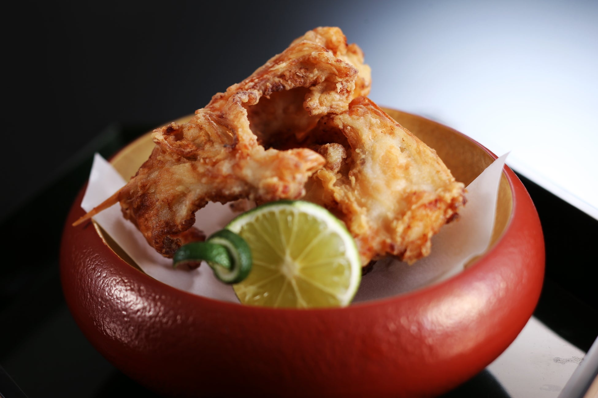 身が締まった但馬とらふぐの唐揚げはカリっとし、滋味深い味わいです。