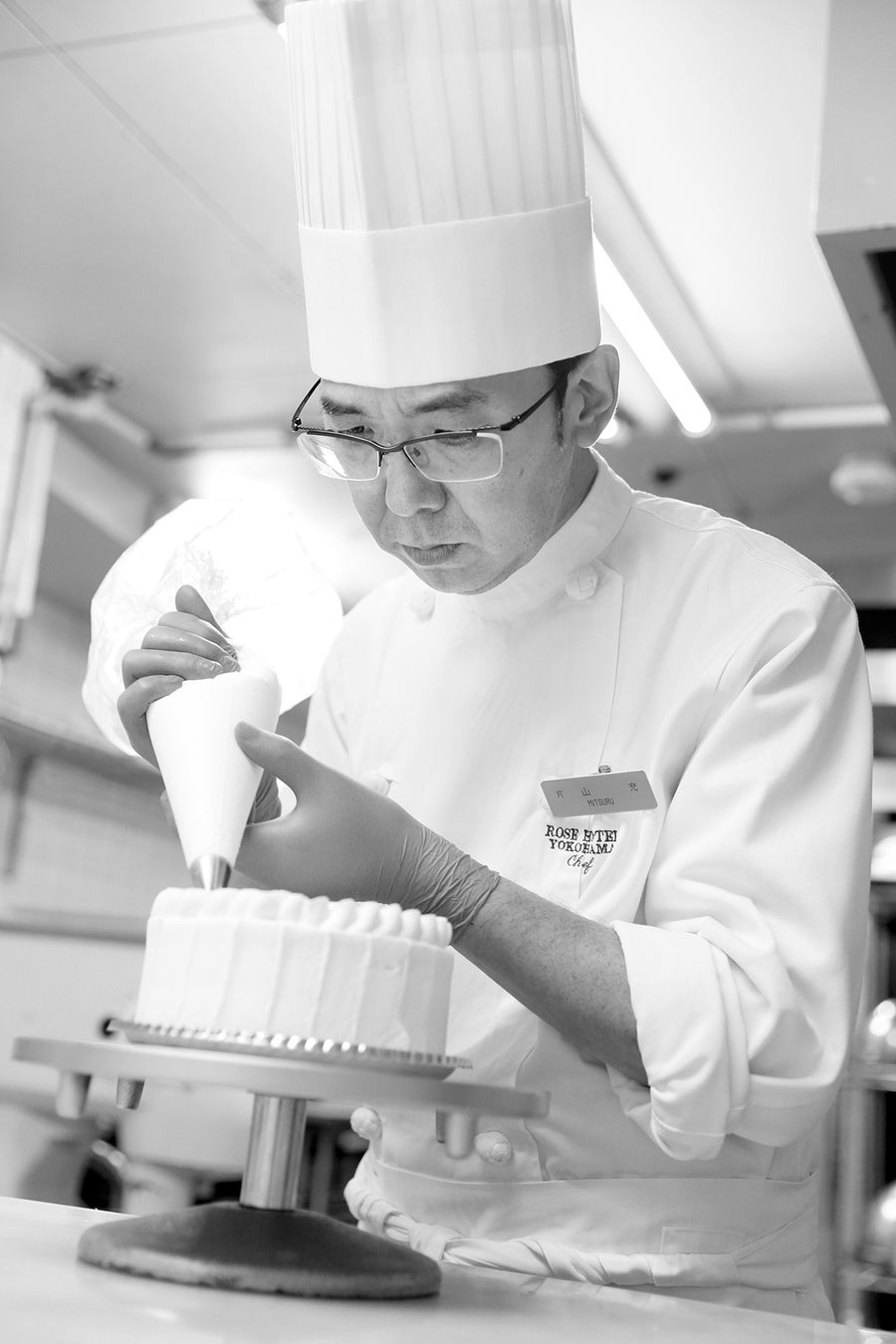 製菓専門学校卒業後、パンドラへ入社。経験を積み、1992年に渡尼。インドネシア共和国、ジャカルタの店舗立ち上げに携わる。帰国後数々の店を経験し、メアリーウェディング、アトリエリーブのシェフパティシエとして勤務。2020年12月よりローズホテル横浜に着任。