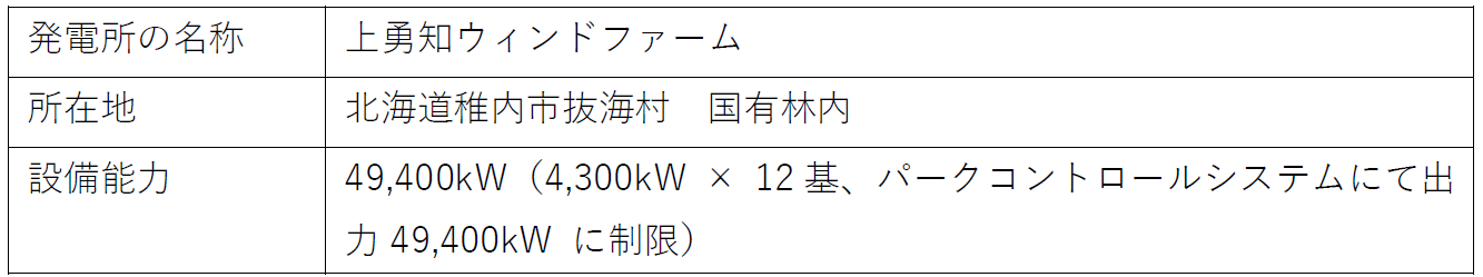 コスモエネルギーホールディングス株式会社(代表取締役社長:山田 茂)の子会社であるコスモエコパワー株式会社(代表取締役社長:野地 雅禎)は、2020年4月より建設を進めてきました上勇知ウィンドファーム(以下「本発電所」)が、全ての工事、手続きを完了し、2023年4月12日より再生可能エネルギー固定価格買取制度(FIT制度)に基づく商業運転を開始しましたので、お知らせします。