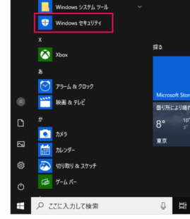 Step1:スタートボタンを押して「Windows セキュリティ」を選びます。
